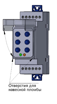 Реле выпускаются в унифицированном пластмассовом корпусе спередним присоединением проводов питания и коммутируемых электрических цепей. Крепление осуществляется на монтажную рейку-DIN шириной 35мм (ГОСТ Р МЭК 60715-2003) или на ровную поверхность. Для установки реле на ровную поверхность, фиксаторы замков необходимо переставить в крайние отверстия. Конструкция клемм обеспечивает надёжный зажим проводов сечением до 2,5мм2. Имеется возможность поставки дополнительной крышки для пломбирования лицевой панели корпуса. Пломбировочная крышка поставляется отдельно по указанию заказчика. На лицевой панели расположены: